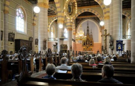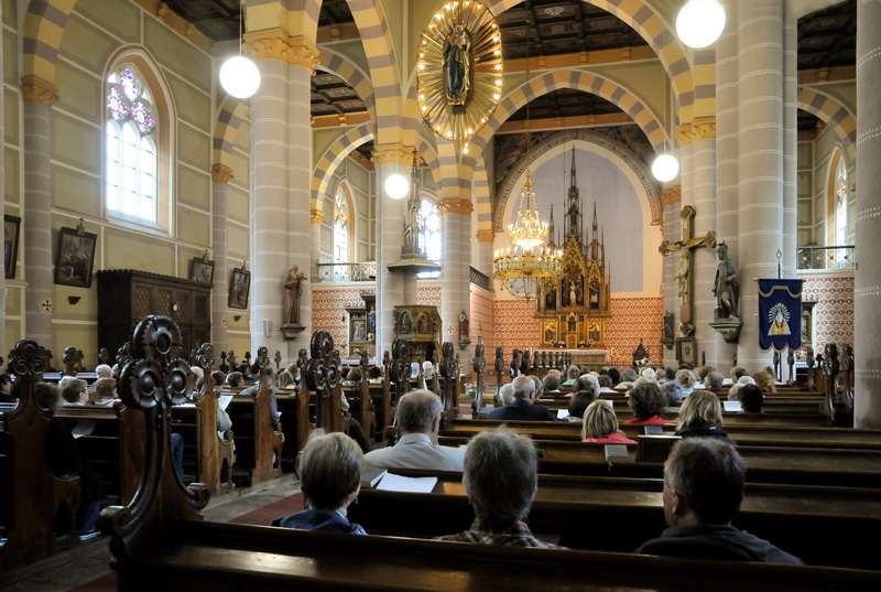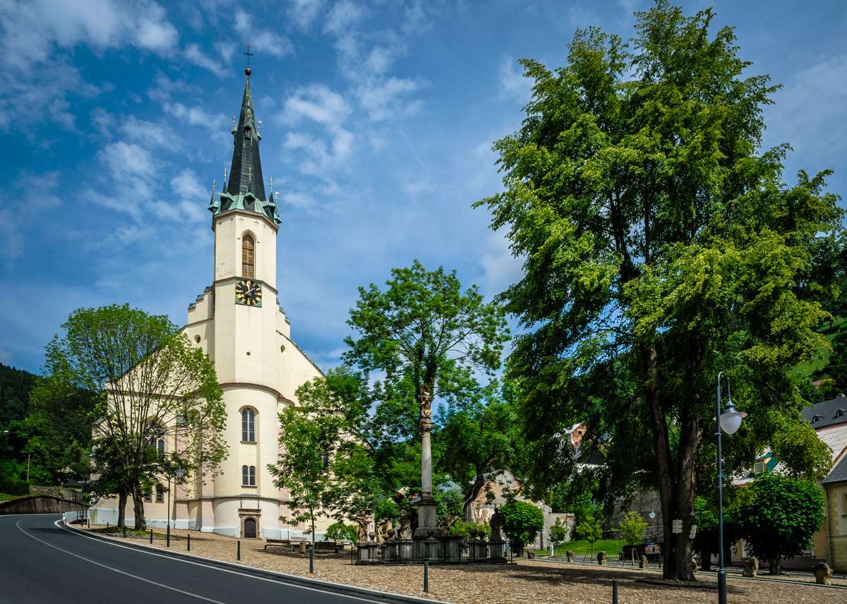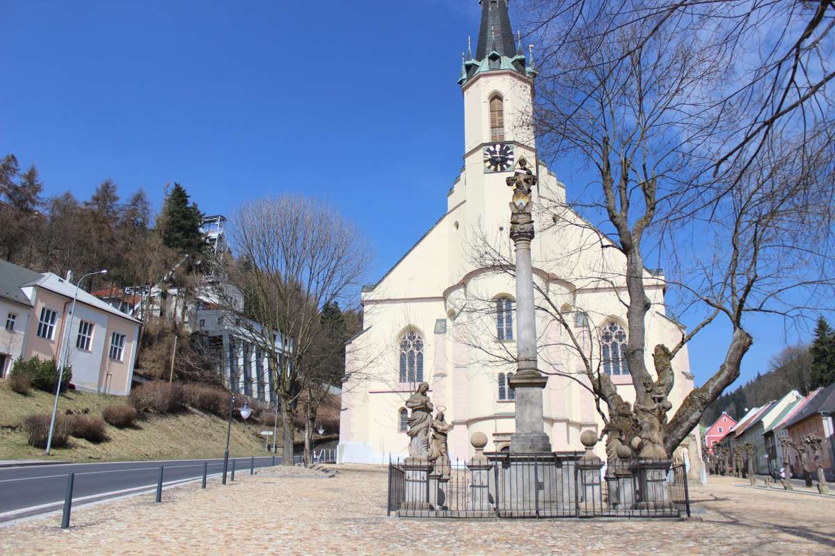 Původně měl sloužit jako první protestantský chrám, ale po bitvě na Bílé hoře byl znovu vysvěcen jako katolický. Platí za poutní místo a věřící sem míří především za soškou Panny Marie z Mariasorgu. Před vraty stojí patnáct pamětních kamenů nazvaných Křížová cesta ke svobodě. Z původního vybavení se dochovala renesanční mříž jáchymovského cínaře a zvonaře Hanse Wildta z roku 1575.