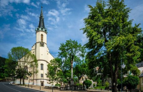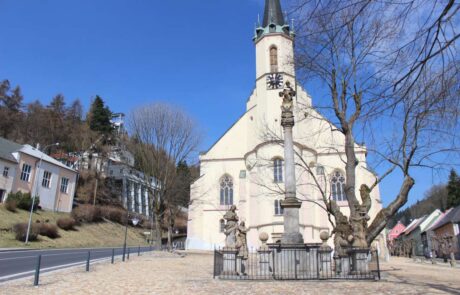 Dominantou Jáchymova je kostel svatého Jáchyma na náměstí Republiky z 16. století, jehož stavbu financovali bohatí těžaři a šlechta.