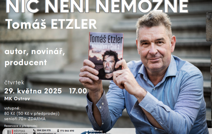 Městská knihovna Ostrov zve veřejnost na mimořádnou besedu s uznávaným novinářem, reportérem a dokumentaristou Tomášem Etzlerem. Akce se uskuteční ve čtvrtek 29. května 2025 od 17.00 v prostorách knihovny.