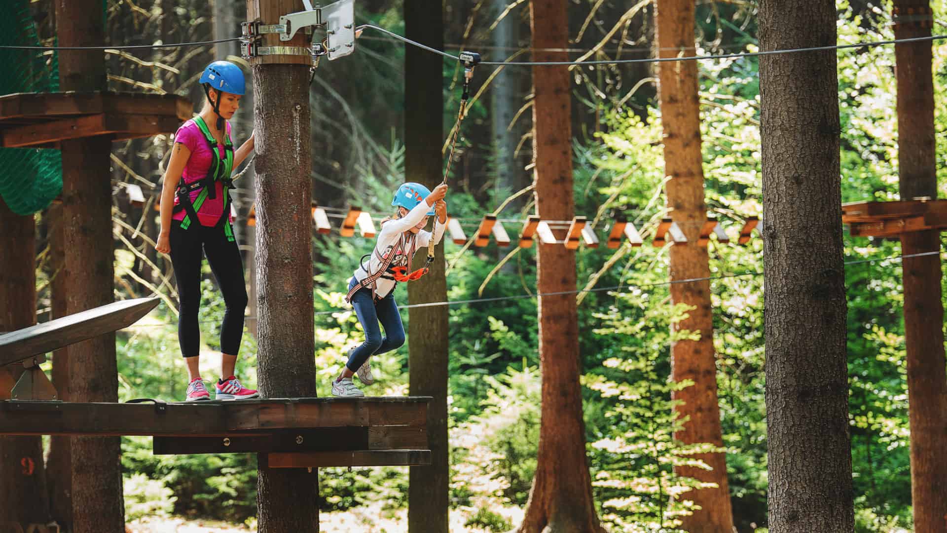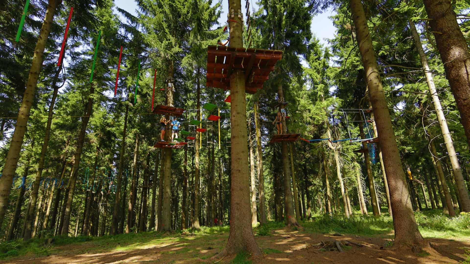 A teď trocha adrenalinu. V Mariánských Lázních vás čeká lanové centrum postavené na 16 metrů vysokých kůlech. Čeká vás lanovka, obří adrenalinová houpačka, lezecká stěna, obří žebřík, nebo třeba skok z dvanáctimetrové výšky. Můžete si vybrat ze dvou okruhů – menší s deseti a větší s devatenácti překážkami vhodnými pro děti od 10 let. Pro nejmenší od tří let je připraven malý dětský okruh.