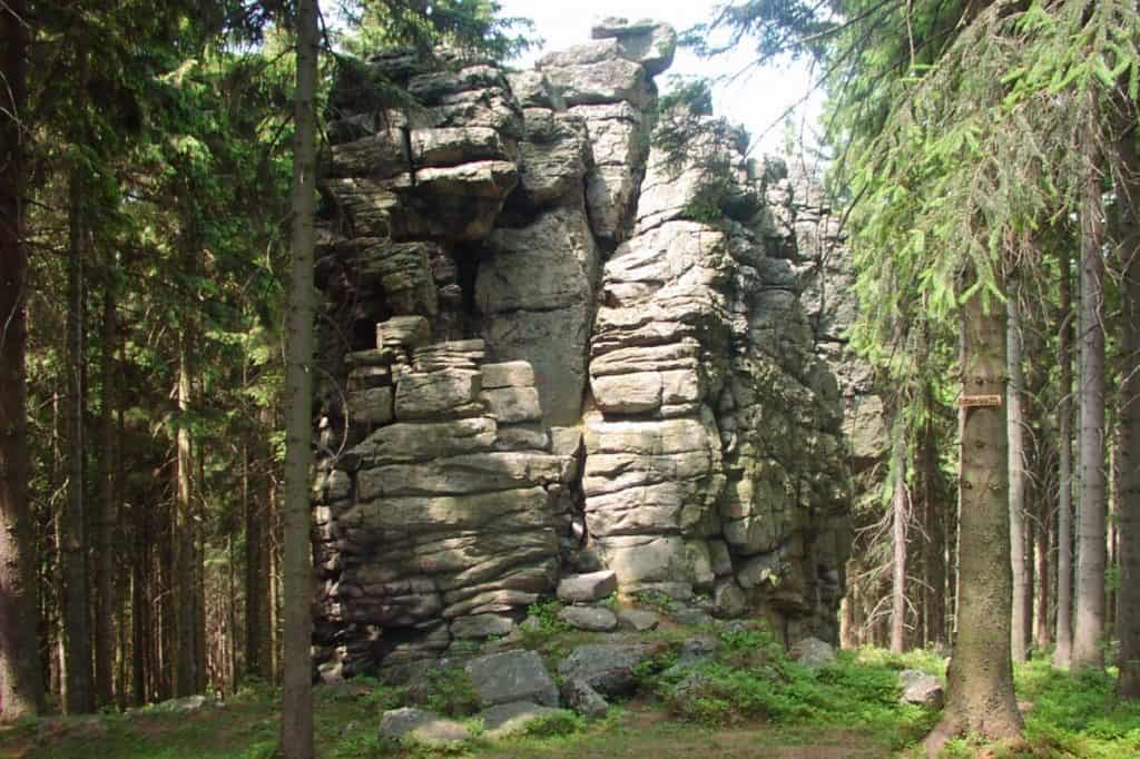 V hustých lesích nad údolím Stříbrného potoka na Kraslicku se teprve před pár lety znovu vynořilo úchvatné skalní městečko. Vysoké žulové věže roztodivných názvů jako Kočičí hlava nebo Kohoutí stopa tu po dlouhá desetiletí ukrýval smrkový les.
