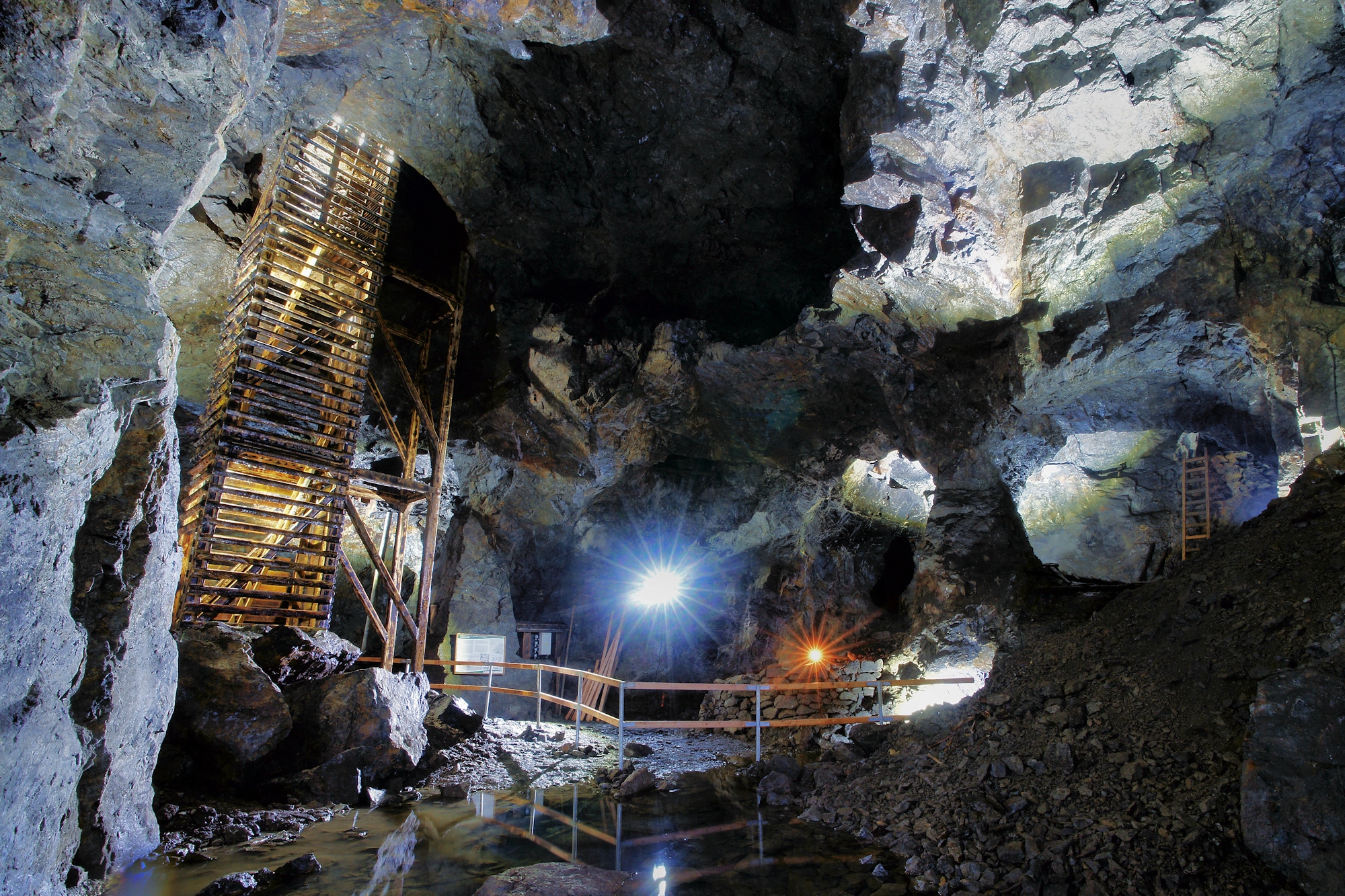 Sestoupíte po kovovém schodišti třináct metrů pod zem, do chladného ticha s teplotou okolo sedmi stupňů. Čeká vás 400 metrů dlouhá trasa plná úzkých chodeb i dechberoucích prostor. Všude kolem vás stopy po těžbě, kapky vody padající z vysokých stropů, kamenné stěny, které toho slyšely víc než leckterá kronika. A pak přijde vrchol. Obrovská podzemní komora, která vás pohltí. Temnota, šepot vlastního dechu a audiovizuální projekce, která vám ukáže, že i skála může vyprávět.